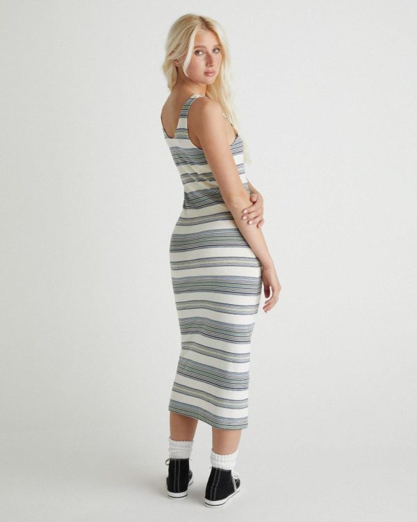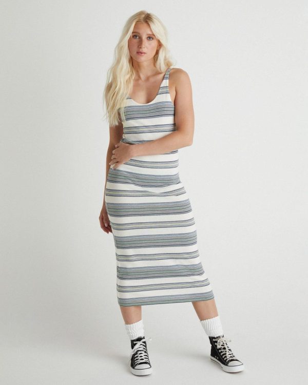 With colors reminiscent of a summer sunset, the Better Days Midi Dress is a slim fitting brushed cotton dress perfect for post-beach hangs that go way past sunset.