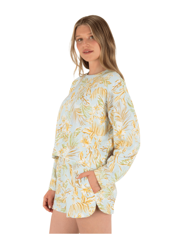 Soft fleece and a cropped shape give the Fall Palms Boxy Crew its lived in feel. Toss it on after a beach dip or layer it over swim on cool summer mornings.