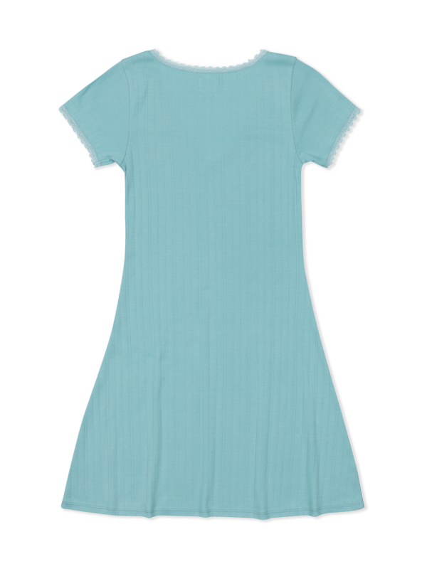 Sundrenched late summer days call for the Gem Dress. Made from soft ribbed cotton with delicate lace accents, it’s an easy pull-on style for beach walks, backyard hangs, and late afternoon tacos.