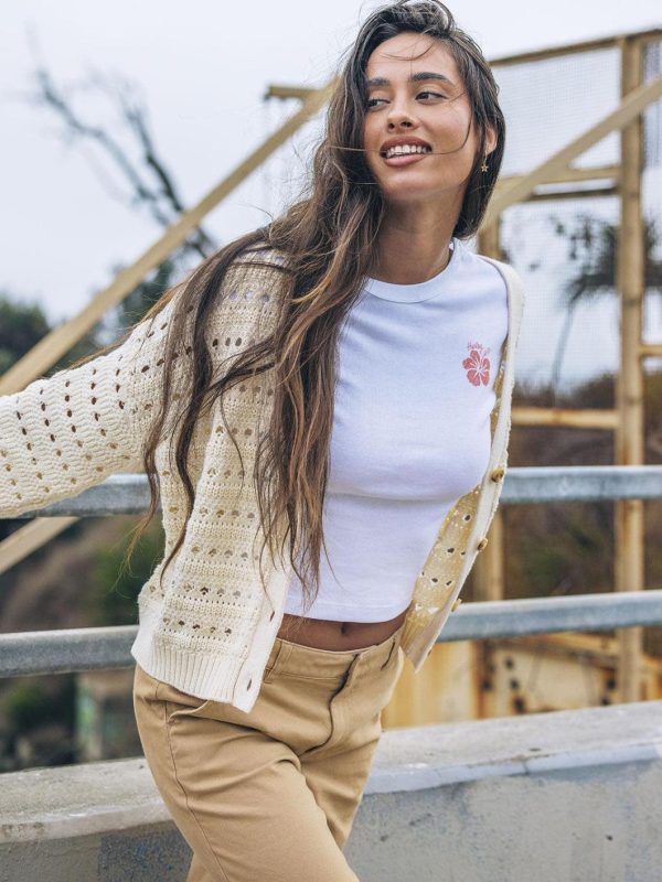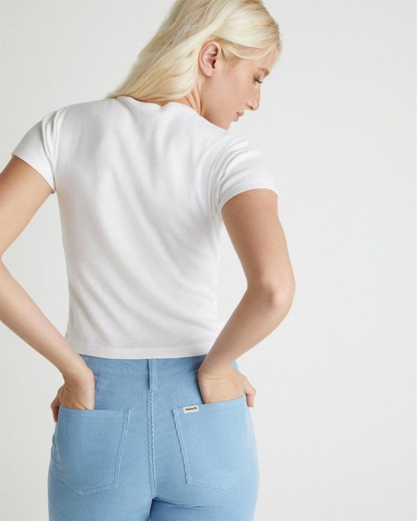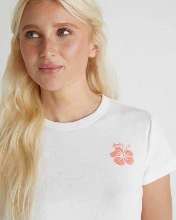 The giving aloha baby tee is giving aloha thanks to a hibiscus at left chest, set on a soft and comfortable cotton.