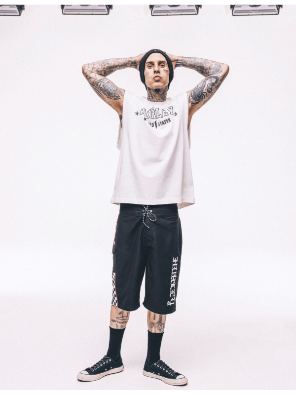 - Hurley x Travis Barker branded patch and interior label.