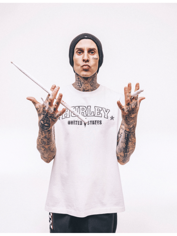 - Hurley x Travis Barker branded interior label.