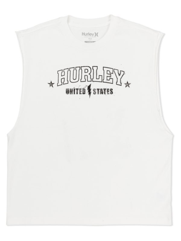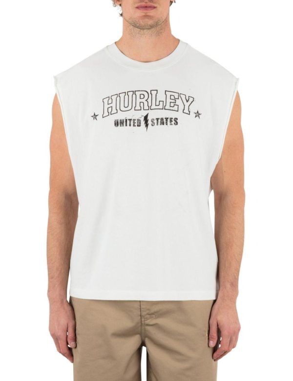 - Muscle tee silhouette cut slightly past shoulder seam.