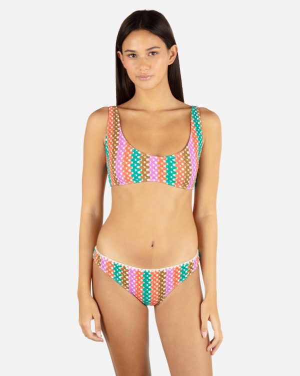 Who knew a bikini could be fun?! The Printed Stripe Crochet Scrunch Moderate Bottom features a printed scrunch fabrication for some major flair and is lined with our signature light support.