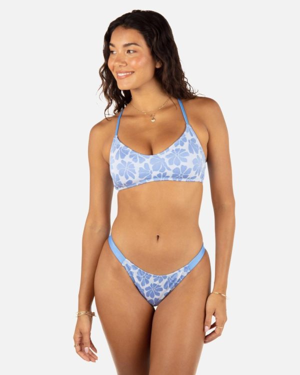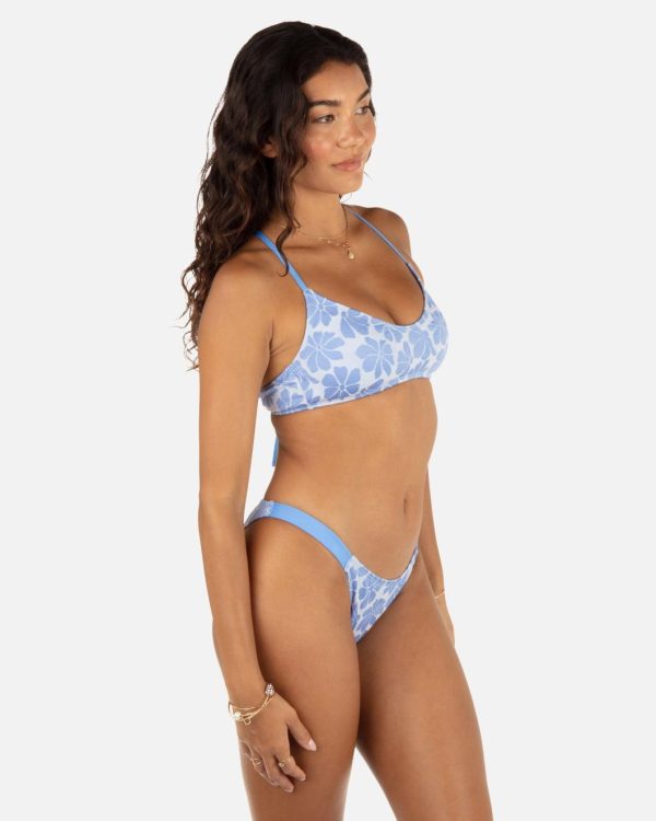 A little cheeky and a whole lot of cute, the Pua Jacquard Cheeky Tab Side Bottom is made from a trendy jacquard fabric that stands out on the sand and in the lineup, plus contrasting tab sides for extra style points.