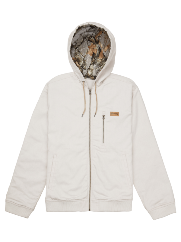 A rugged essential with refined detailing, the Shapers Canvas Worker Jacket is built for both utility and everyday wear. Crafted from 100% cotton and finished with a garment sand wash for a worn-in feel, this full-zip, hooded silhouette features ribbed cuffs and hem for added comfort and structure. The interior reveals a Realtree® camo-printed taffeta lining with light 60gsm quilting for warmth without the bulk.