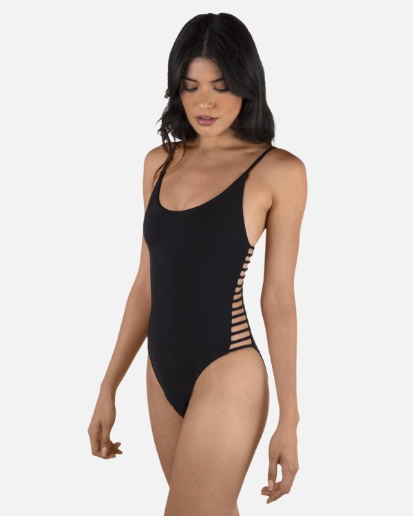 - Scoop neck OTS one piece with strappy cut out detail at sides