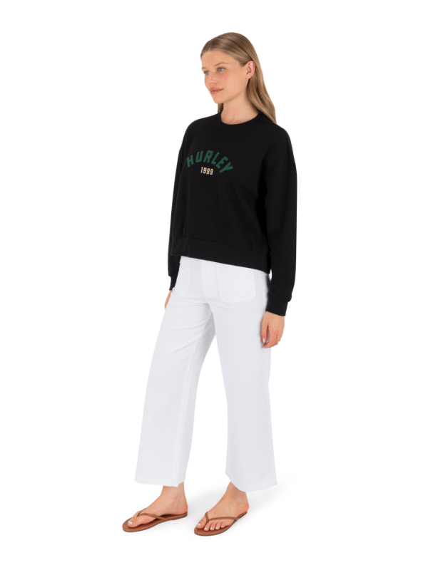 A subtle collegiate vibe meets all-day comfort in The Worthy Boxy Crew, which features felt applique lettering with chain stitch embroidery on heavyweight French terry — an easy layer for campus days and coastlines alike.
